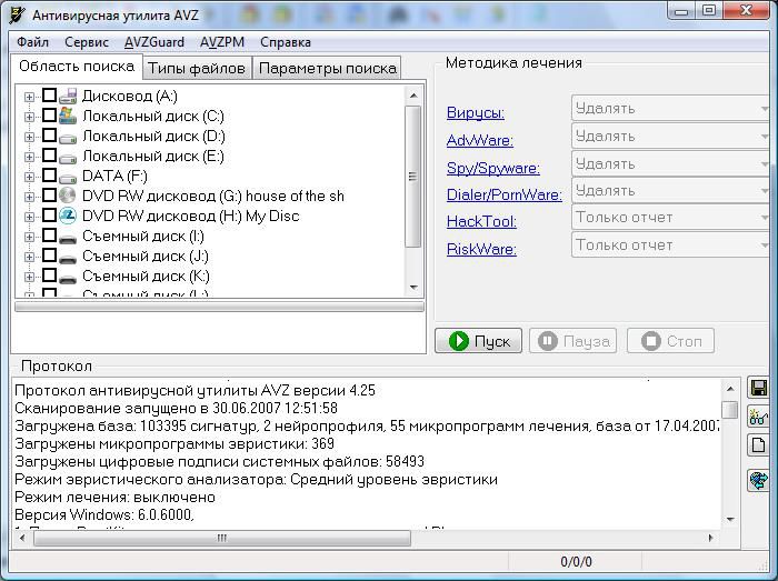 Основное назначение - обнаружение и удаление SpyWare и AdWare модулей, а также Dialer (Trojan.Dialer), троянских программ, BackDoor модулей, сетевых и почтовых червей, TrojanSpy, TrojanDownloader, TrojanDropper. По сути, AVZ является аналогом популярной программы Ad-aware (естественно, со своими особенностями).