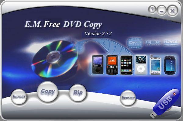 Портативная версия удобной программы для работы с DVD дисками. E.M. Free DVD Copy поможет вам скопировать, записать, переписать DVD фильмы и даже конвертировать их в нужные вам форматы.