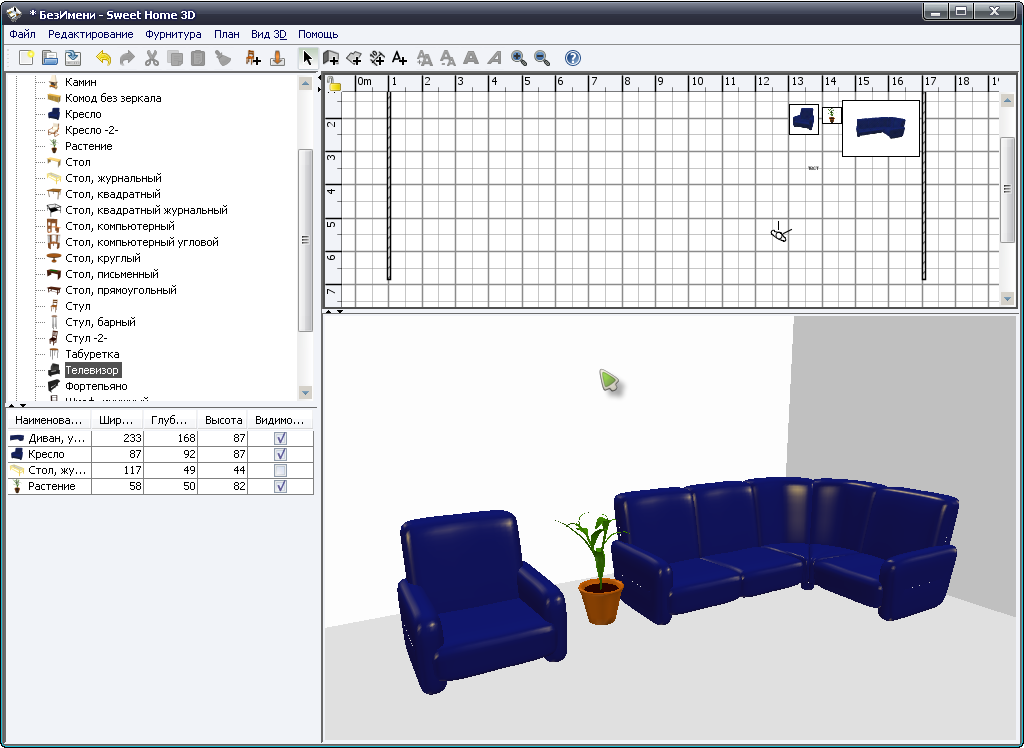 Вышла очередная версия оригинальной, простой и бесплатной программы Sweet Home 3D, которой пользуются для проектирования интерьера. Эта великолепная бесплатная программа разработана на языке программирования Java и, кроме всего прочего, имеет открытый исходный код. При работе с данной программой можно использовать 3D-модели, которые в большом количестве представлены на официальном сайте и доступны пользователям для бесплатной загрузки. Sweet Home 3D позволит Вам предварительно просмотреть получившийся интерьер в 2D режиме (вид сверху), а также визуализировать конечный вариант расстановки мебели в 3D режиме. Хоть и качество визуализации и оставляет желать лучшего, но со своей основной задачей Sweet Home 3D справляется. Распространяется: бесплатно Скачать: http://depositfiles.com/files/irgigejbh?redirect Скачать: http://letitbit.net/download/80387.8dddf4c4b4ff8b631a4d4aea7c94/SweetHome3D_Setup.exe.html | |