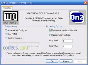 VP6 - Известный кодек, прямой конкурент MPEG-4. Высокое качество, хороший уровень сжатия и бесплатность для персонального использования. VP6 – это высококачественный видео кодек, бесплатный для персонального использования. Обеспечивает как воспроизведение, так и кодирование.